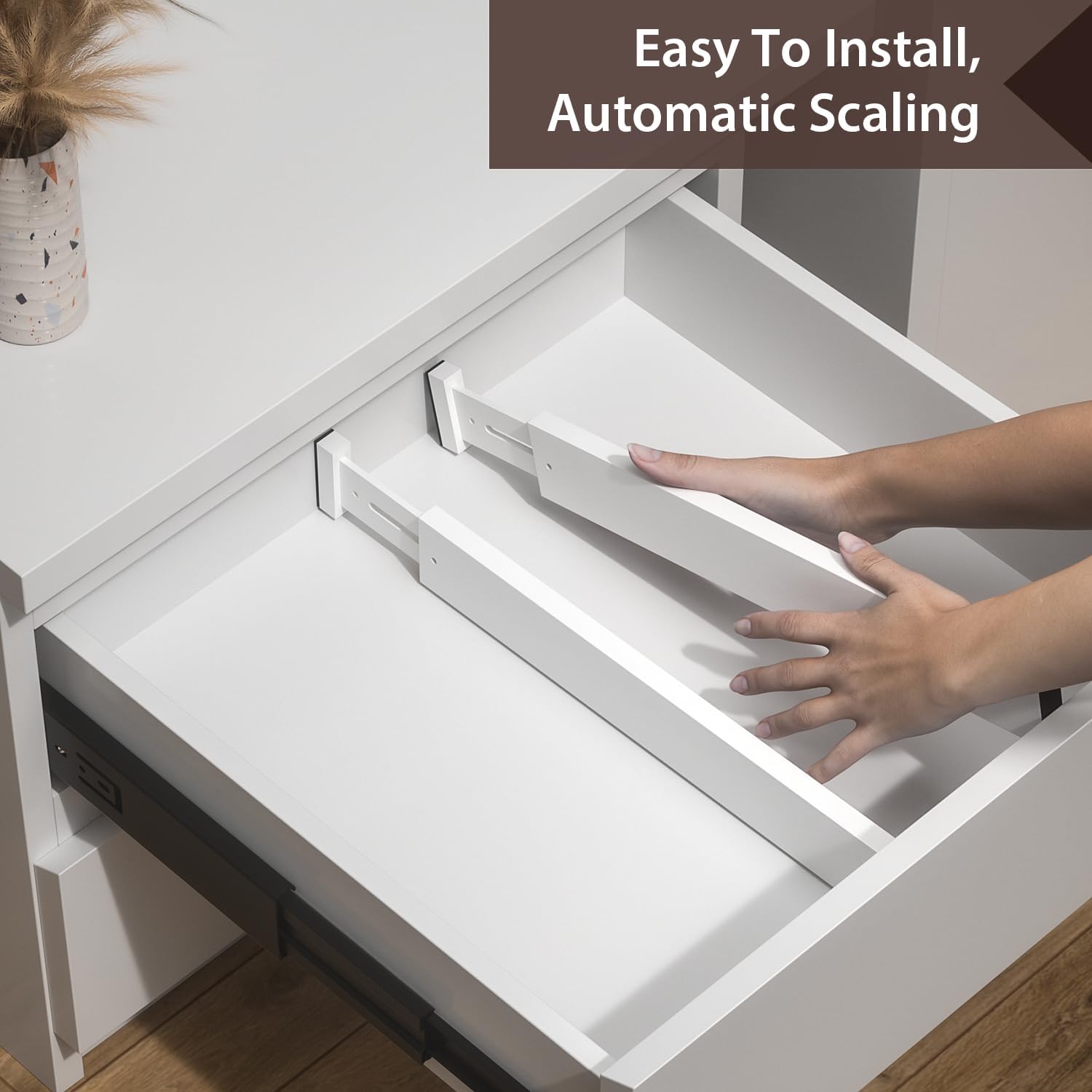 Use This Set Of Adjustable Bamboo Drawer Dividers Organizers! Help You Increase Drawer Space Utilization By 50%! Our team focus on premium drawer divider, help you keep your drawers organized! Product Size:(large)High: 2.36 inchMinimum length size: 17 inchMaximum length size: 22 inchThickness: 0.59 inchProduct Material:Our adjustable drawer dividers are made of premium natural bamboo, eco-friendly, sturdy, durable, the bamboo is polished flat and smooth, spring loaded drawer dividers. Expandable drawer divider, scientific design, improve the space utilization. This drawer organizer divider size suitable most drawer. Widely Uses:Drawer separators can be used in bedroom, bathroom, desk drawer, kitchen, dresser, etc.As drawer separators for dresser, kitchen drawer dividers, drawer dividers for baby clothes, drawer dividers kitchen utensils. Now, start organizing your drawers with this bamboo drawer divider, your drawers will be neat and clean, and become a warm familyNo more hesitation! Try it now! Satisfaction Guaranteed:Please contact us if any issue with our space aid bamboo drawer dividers, we will be very happy to solve the problem for you. Just add to your cart now! Package Includes:4pcs X bamboo drawer dividers