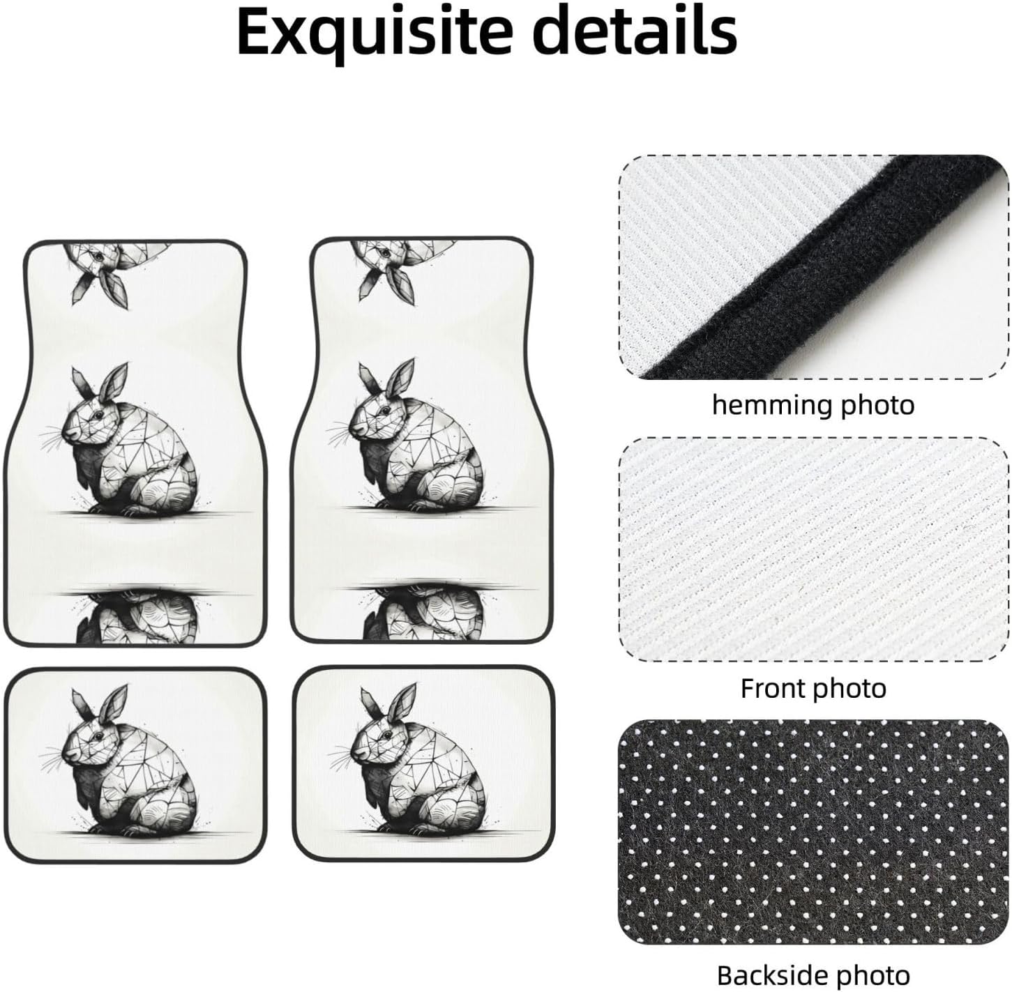 Add a touch of elegance to your car. Our Line drawing of rabbit Line drawing of rabbit printed car mats are light-resistant and stay colorful even in the hot sun. They are tightly woven, soft and firm to the touch, easy to clean, and can be easily rinsed to remove stains and keep your car clean. The drop-molding process on the bottom not only prevents dust from entering, but also simplifies the installation process. The non-slip design ensures stability in any driving situation, ensuring your safe driving. Suitable for a variety of models, whether it is a car, truck or van, this mat can perfectly blend with your interior style.