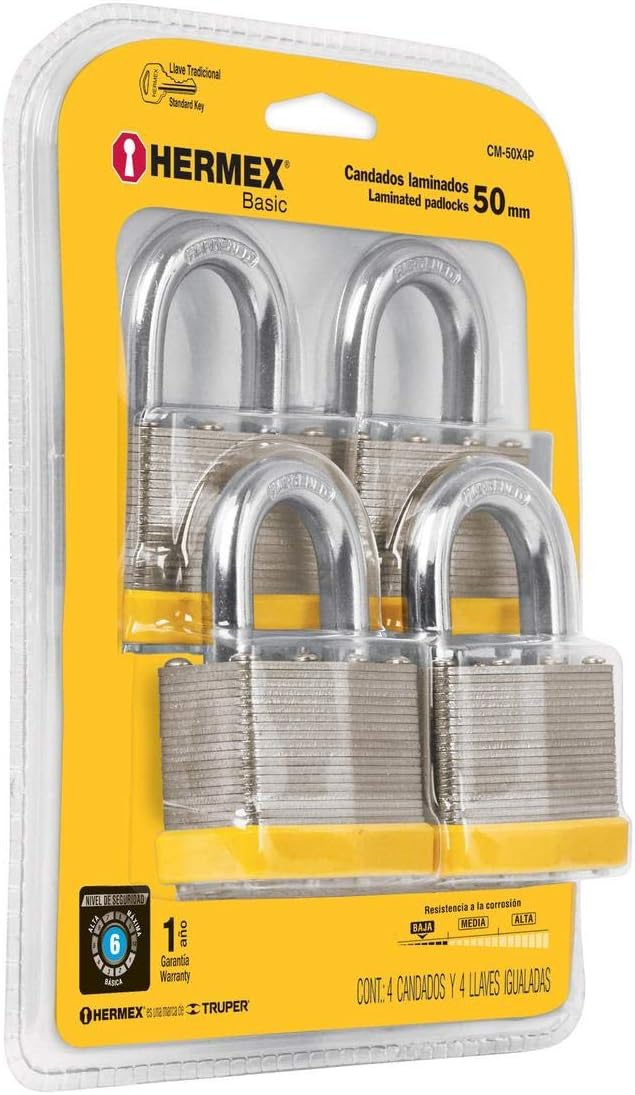Padlocks rolled, 50mm, blister 4 parts Basic Hermex