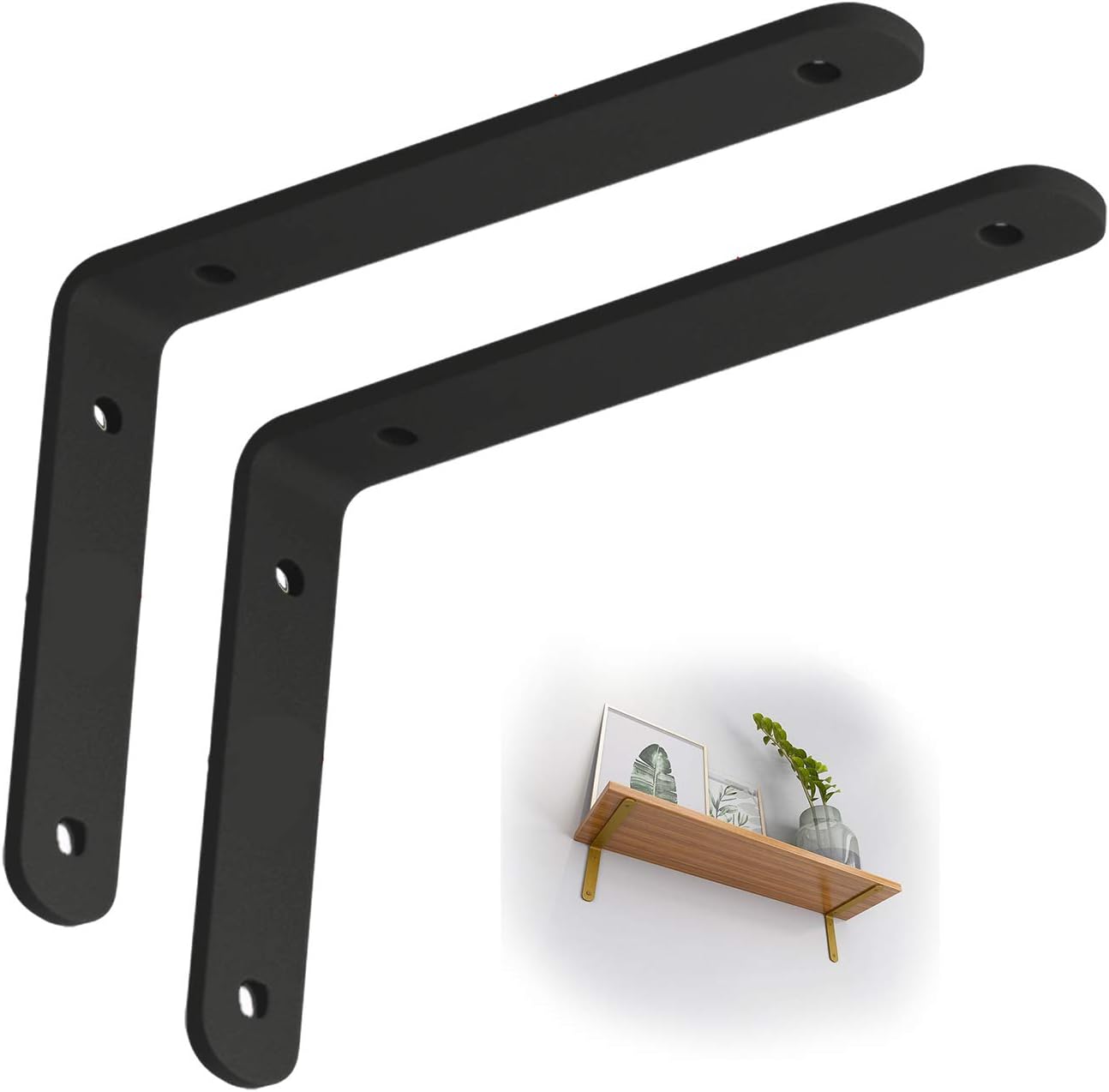 Our floating shelves are the perfect result of research; they are not only practical but also decorative, they are perfect for displaying your favorite decorative ornaments and hangers-on floating walls.Feature:Multi-purpose bracket for installing shelves. These heavy-duty floating shelf brackets fit any type of shelf, are suitable for custom shelves, and allow you to create beautiful and versatile shelves anywhere in your home.Save space. Our floating shelf supports are the perfect extra storage solution for families with limited space.Installation is quick and easy to install. Shelf supports can be installed relatively easily!It is very suitable for use on open shelves in the kitchen, kitchen, mantel, garage, or any room in the home or office.Just stick a wooden board on top of these floating shelf supports, and you will get a beautiful and rustic shelf.【Specification】Product name: shelf bracketMaterial: Steelsize:100mm/4 in, 150mm/6 in, 200mm/8 in, 250mm/10 inMaximum load: 20 kg (44lb)Installation method: screw fixedThe order includes:2x bracketsMatching screw and expansion tube【Prompt】1. The product does not contain wood.2. The installation position should be horizontal, and the screws should be installed in a proper position to avoid loosening.