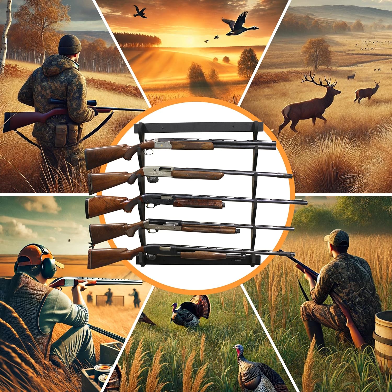 Keep your firearms organized, secure, and beautifully displayed with the Rush Creek Creations 5 Gun Wall Rack. Designed for both style and function, this black gun wall mount rack is the perfect solution for safe, space-saving firearm storage in your home, cabin, garage, or hunting lodge. This durable rifle and shotgun wall rack holds up to 5 long guns, making it ideal for gun owners looking for a reliable way to store and showcase their collection. Whether you need a gun display rack, wall-mounted rifle holder, or a convenient shotgun storage organizer, this rack delivers premium performance with a sleek black finish that matches any décor.