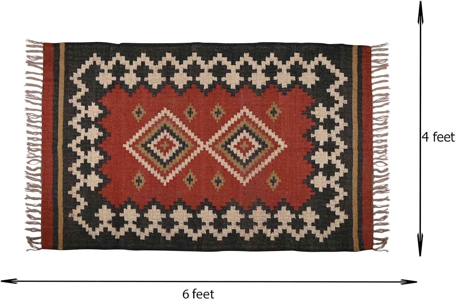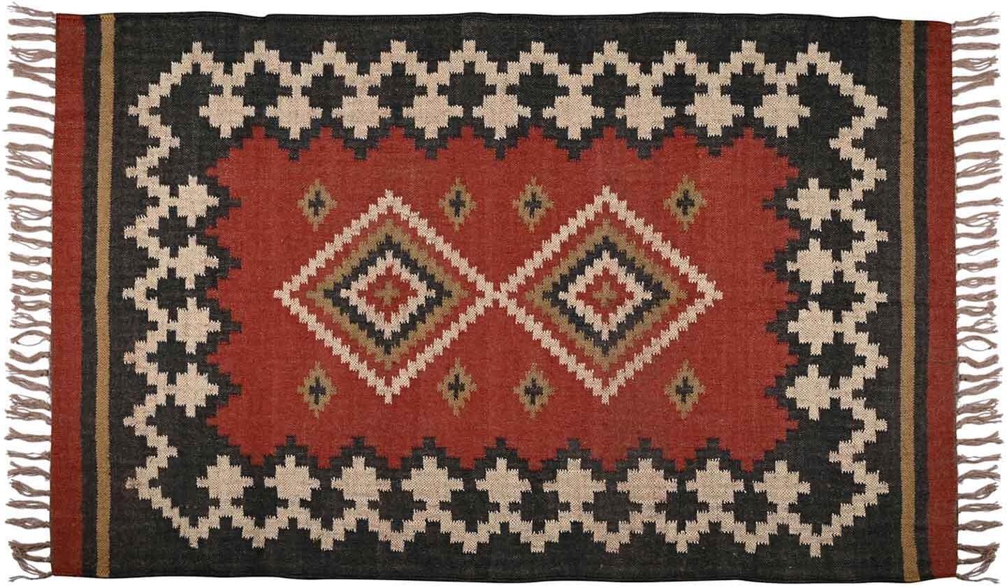 RugsJaipurIndia Square Kilim Rug, a handwoven masterpiece made from a blend of wool and jute. This durable and stylish braided Dhurrie rug is perfect for adding a rustic, farmhouse charm to your living room, kitchen, or entryway. Whether you need an area rug or a runner, this kilim design brings warmth and a natural look to any space.★★★★RugsJaipurIndia highlights that the rug comes from Jaipur, India, a place known for making quality, handwoven rugs. It suggests that the rug is made with traditional craftsmanship and skill, adding to its value and uniqueness.★★★★