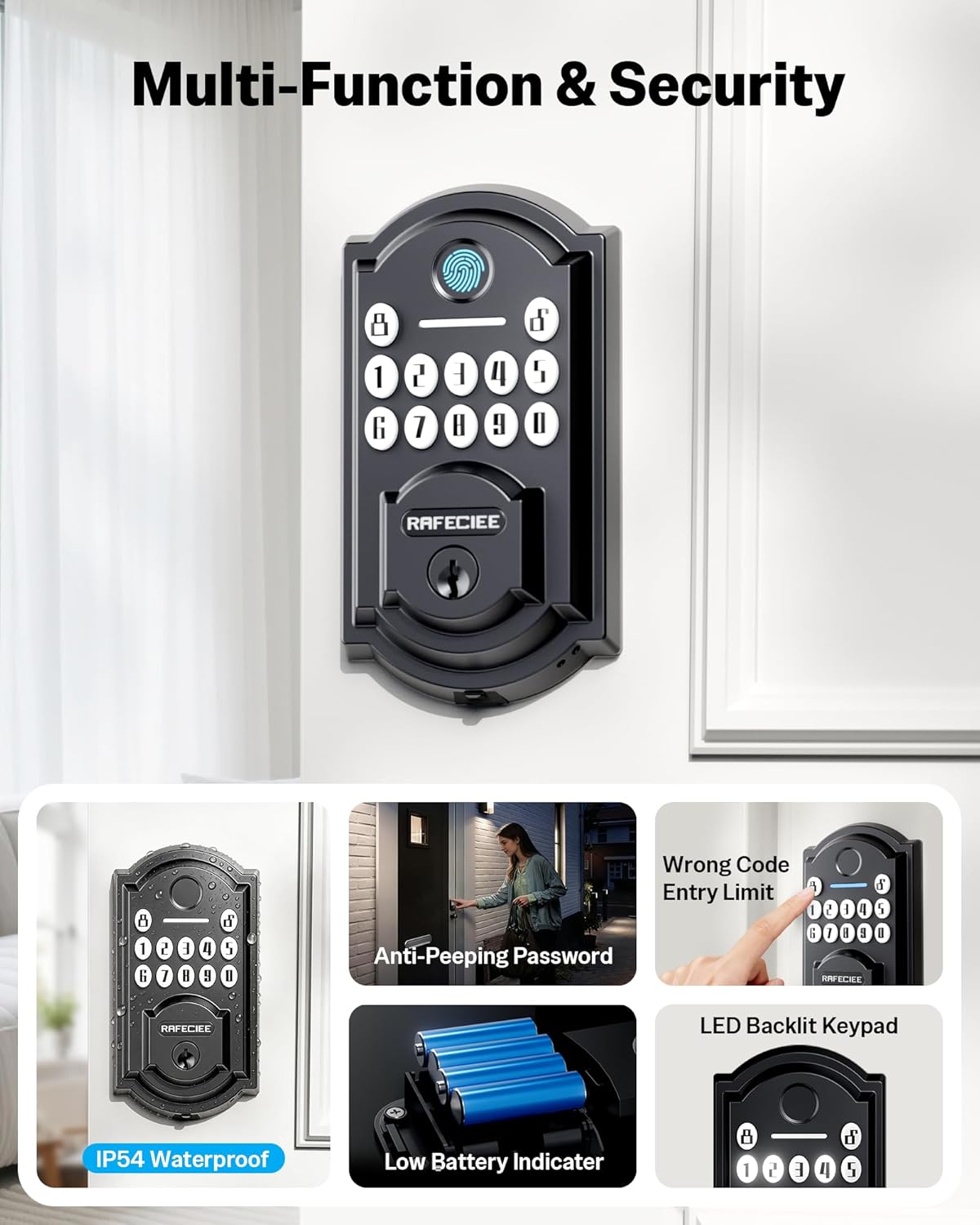 | Additional Features | Auto-Lock, Fingerprint, Keypad, One-Touch Lock |